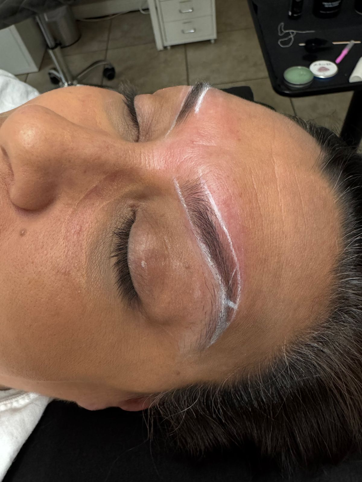Carefully assess the overall symmetry, height, and shape of both brows. Adjust the mapping lines as needed to ensure balance and proportion before moving into shaping.